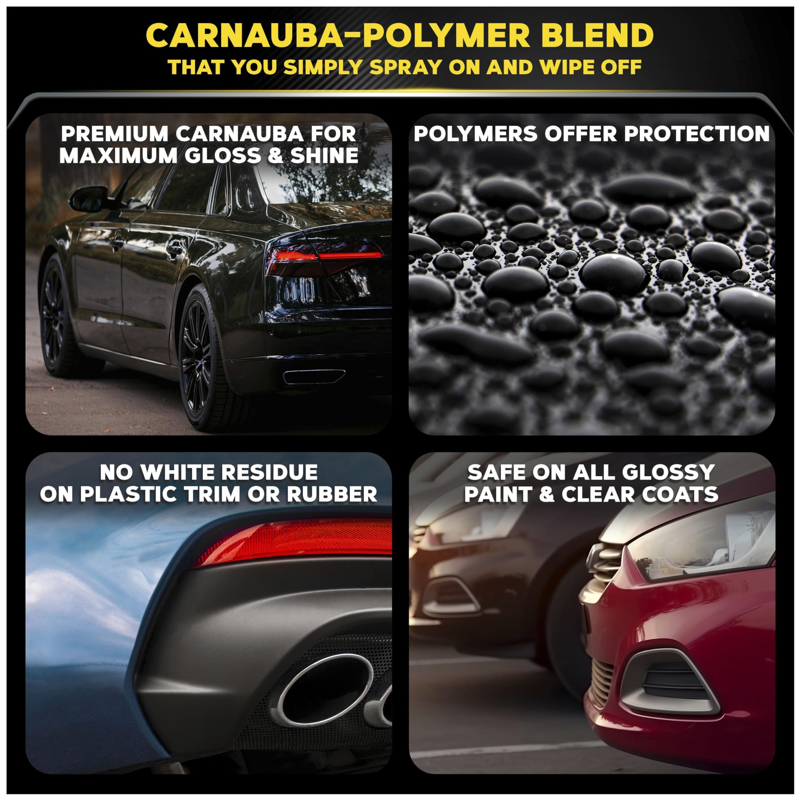 - EASY-TO-USE SPRAY: This hassle-free application can even be done in direct sunlight. So, don’t sweat the heat and give the best to your car’s coat by applying our professional grade spray wax for an easy and lasting shine.