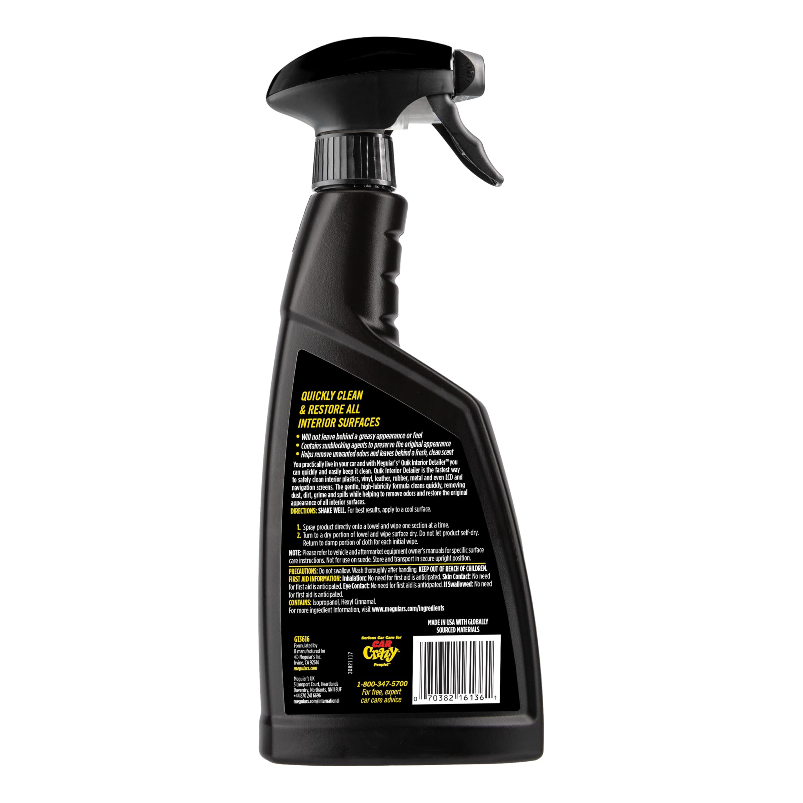 - NON-GREASY FORMULA WITH NO RESIDUE: This car leather seat cleaner and conditioner spray features a non-greasy formula that both cleans and protects your leather without leaving behind any unsightly white residue.