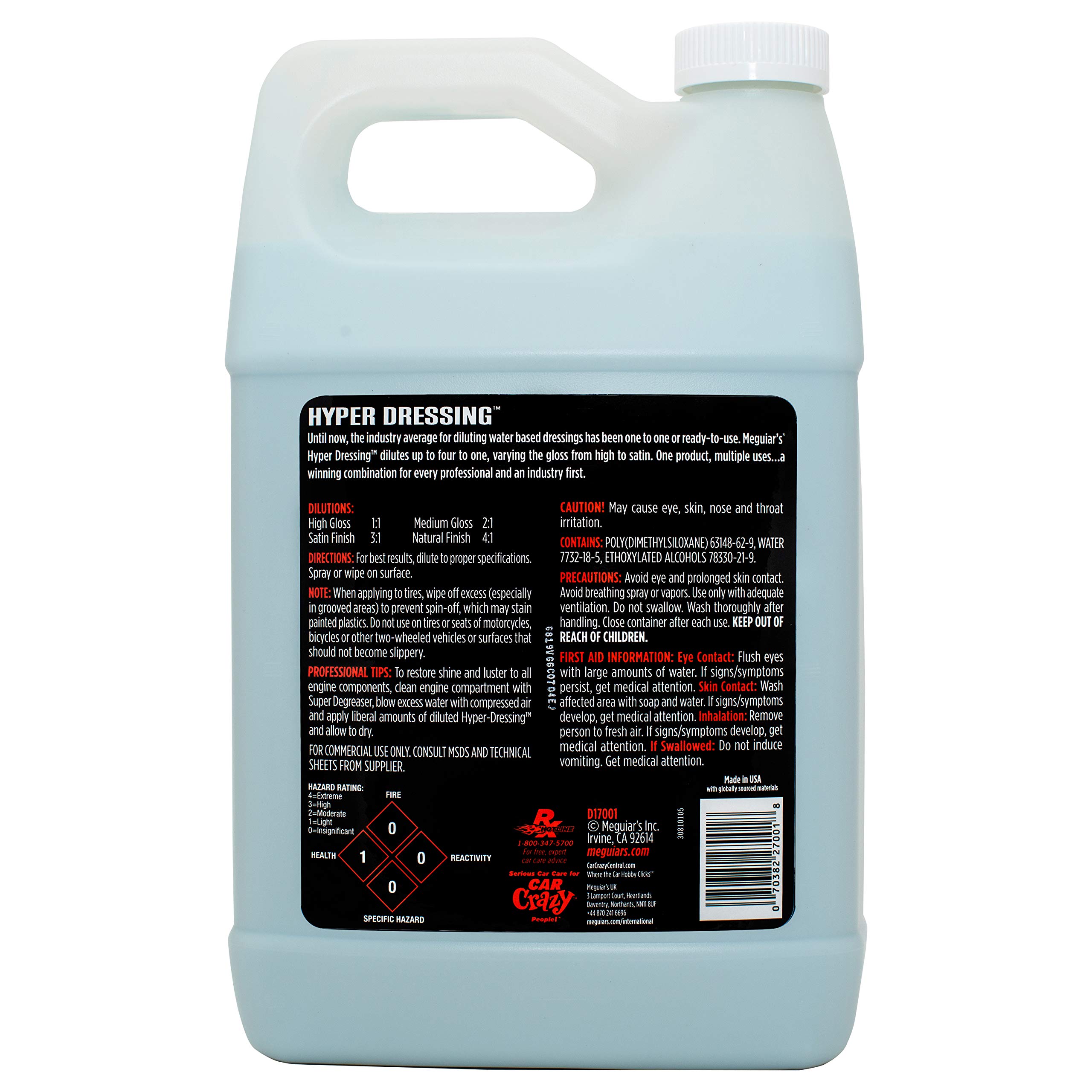 Meguiar's Hyper Dressing, 1 Gallon, Trim Shine For Drivers & Detailers— Car Wash Soap Restores Gloss And Deep Black Look; Use On Plastic And Rubber Trim, Tires, Bumpers And Wheel Wells