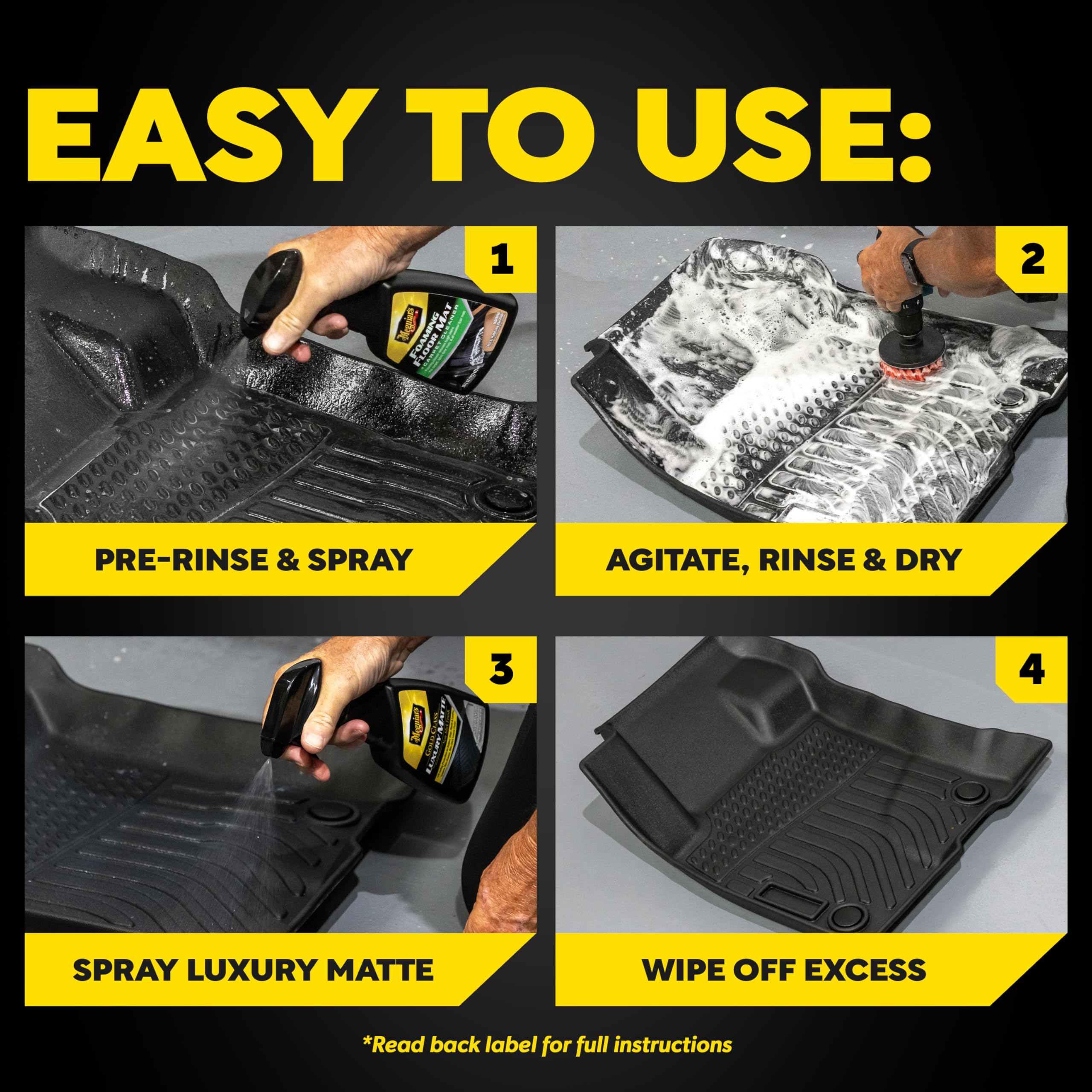 - CLEAN & PROTECT ALL-WEATHER MATS: The perfect car detailing kit to deep clean, restore, and protect rubber and plastic mats. Includes Mat and Carpet Cleaner, Matte Non-Slick Finish, drill attachment for quick cleaning, and a premium microfiber towel